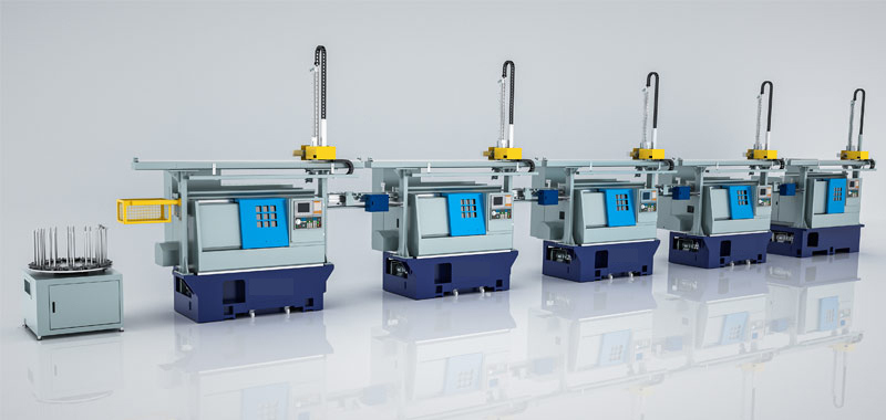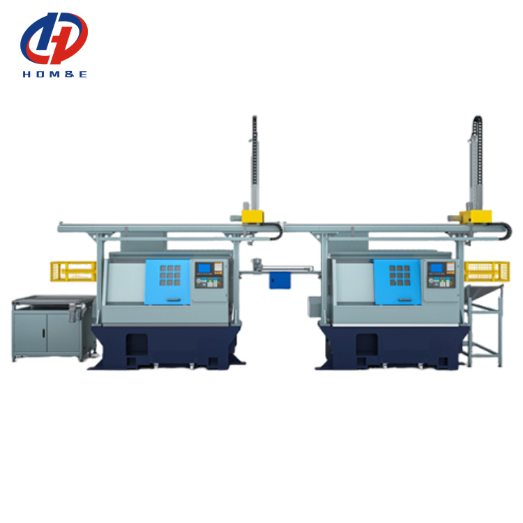 Solution Introduction: For workpieces with a longer processing cycle, one robotic arm can be used to load and unload materials for two machine tools, saving equipment procurement costs. For products that require U-turning processing, U-turning devices can be used to meet the requirements of automated processing. The solution integrates the machine tool and mechanical arm through a dual-channel CNC controller, ensuring stable operation. The automation uses full servo control, featuring fast operation speed, accurate positioning, and the ability to run 24 hours a day without the need for dedicated personnel to stand by.